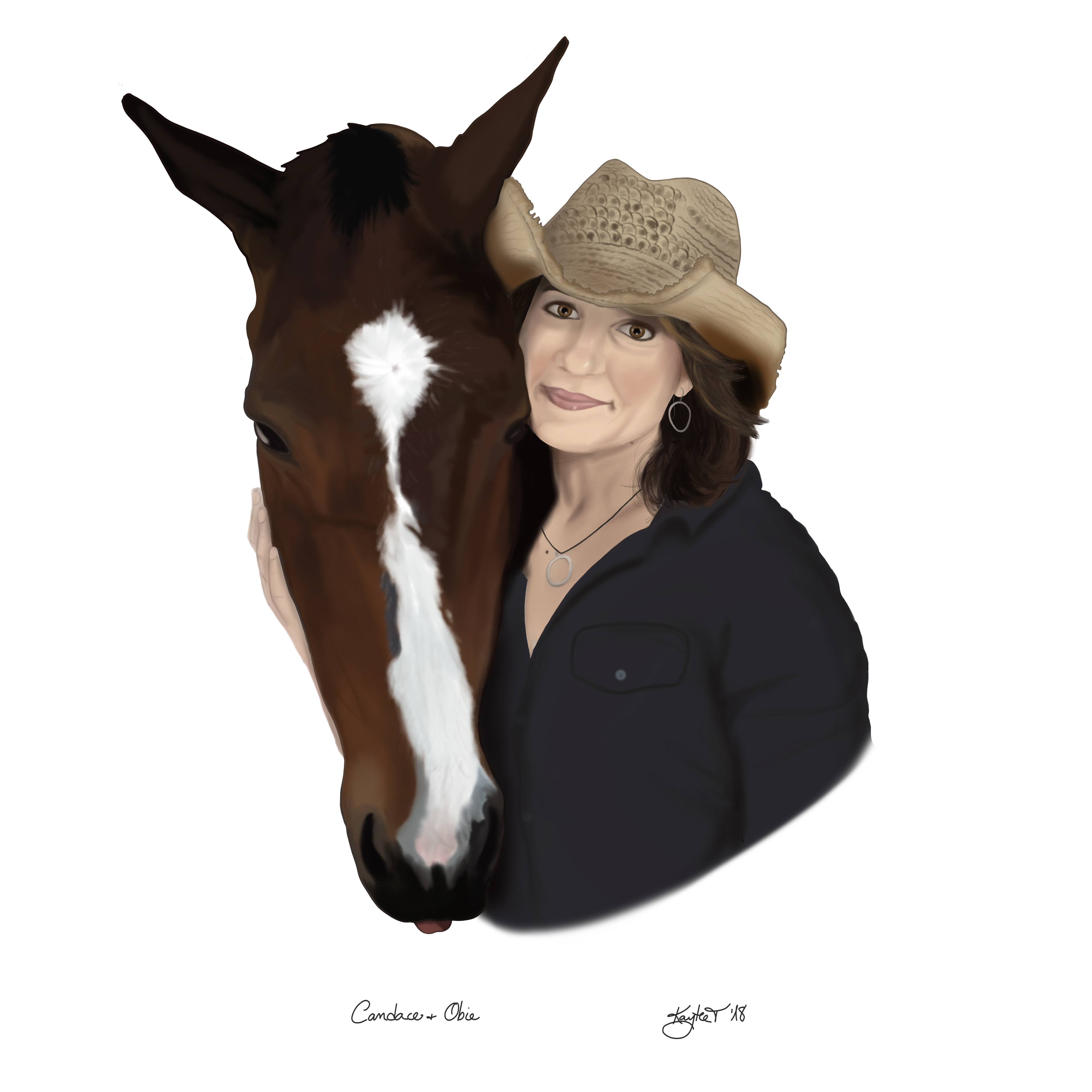 This is a commission I made, for a woman celebrating her best friend's 50th birthday. She is inseparable from her horse friend, Obie, whom she rescued a few years back. Done in Procreate on iPad Pro.