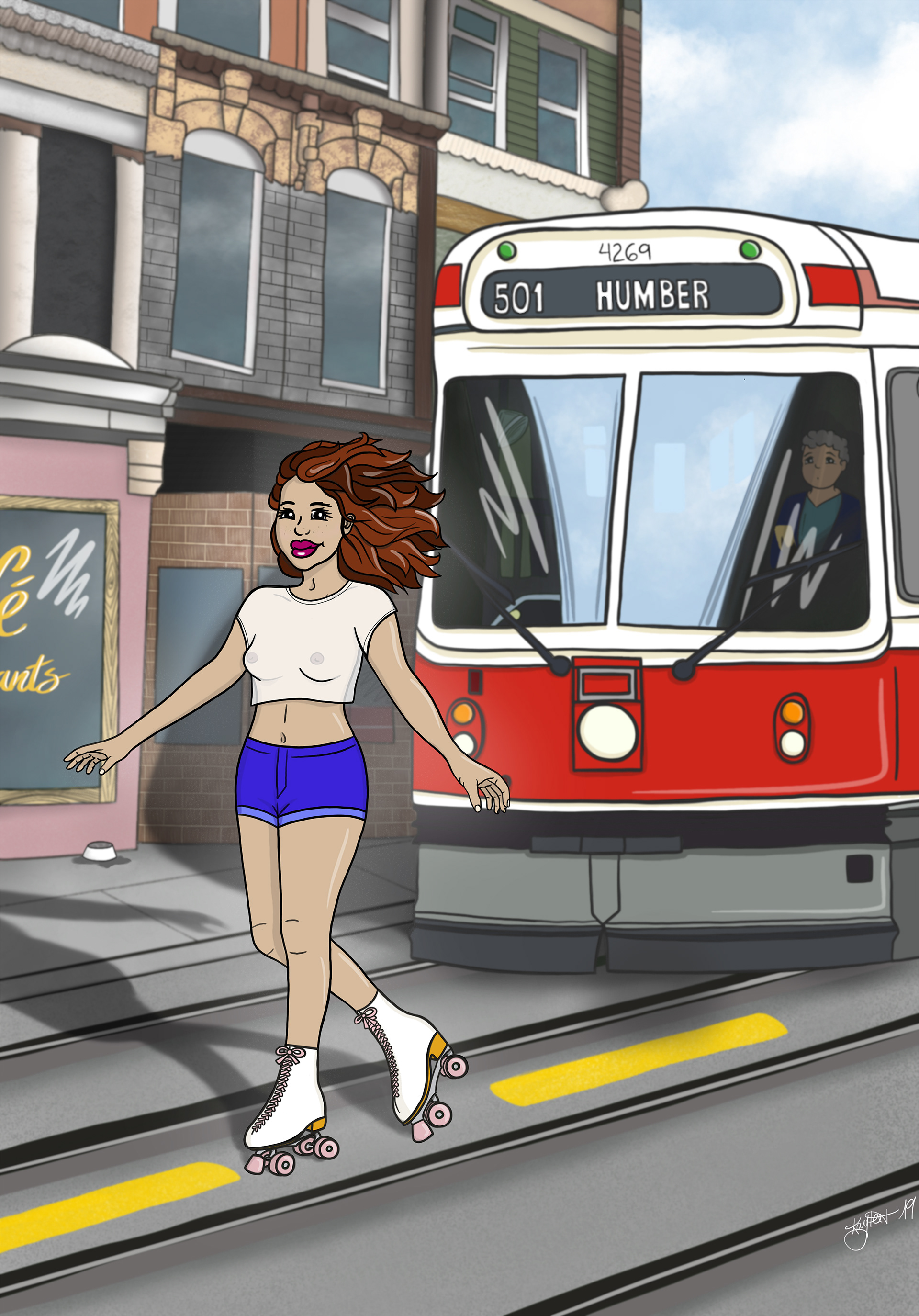 This is a tongue-in-cheek love letter to Toronto's transit system, the TTC. The streetcar's have a designated lane, so when there's anything in front of it, no cars - or anything really - can pass.