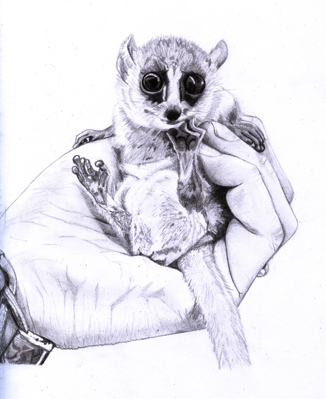 This is a pencil drawing I did from a National Geographic picture I'd found of someone holding a lemur, in 2009.