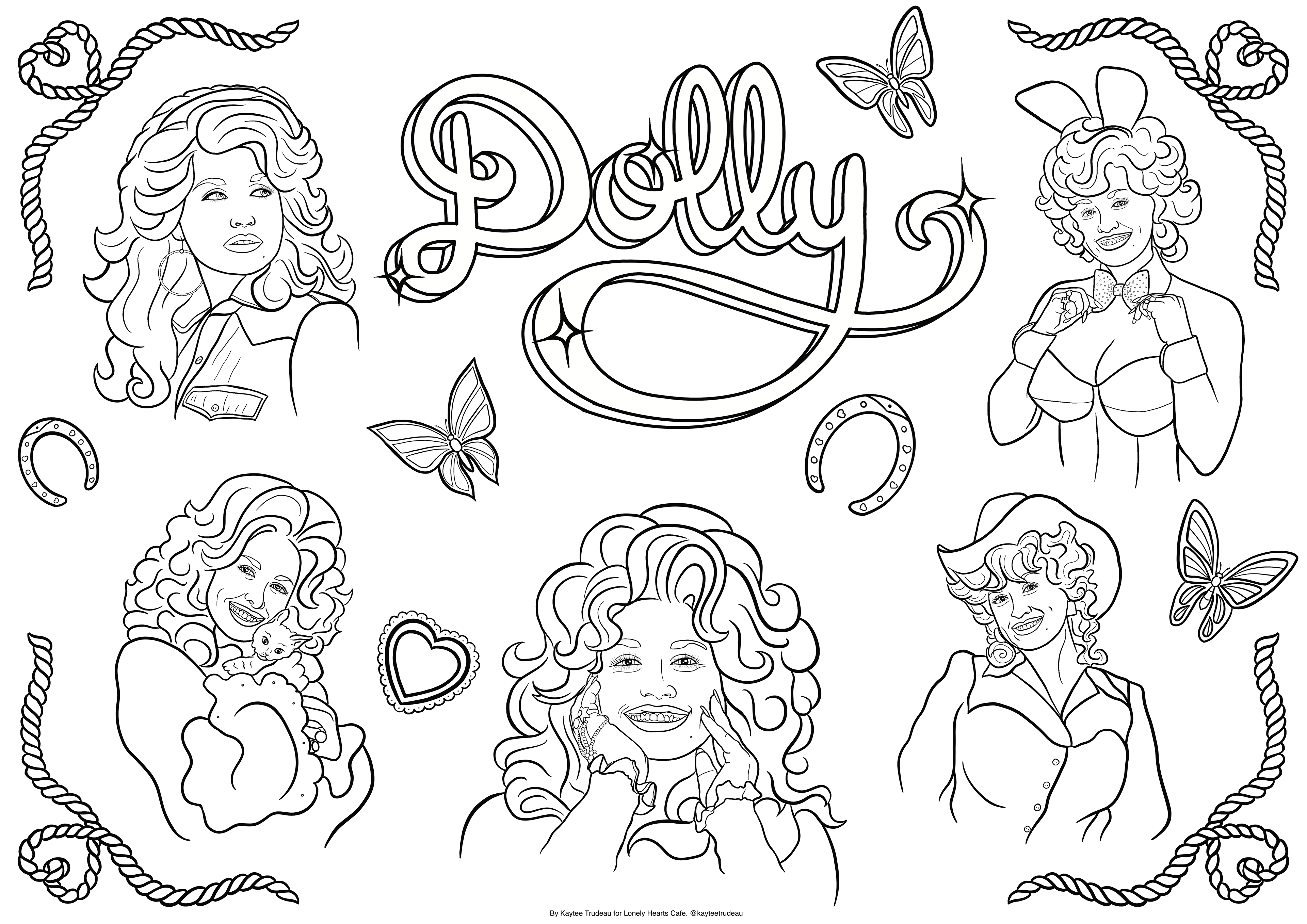 I was hired by Lonely Hearts Cafe in Berlin to design coloring book style placemats in Dolly Parton and Twin Peaks styles.