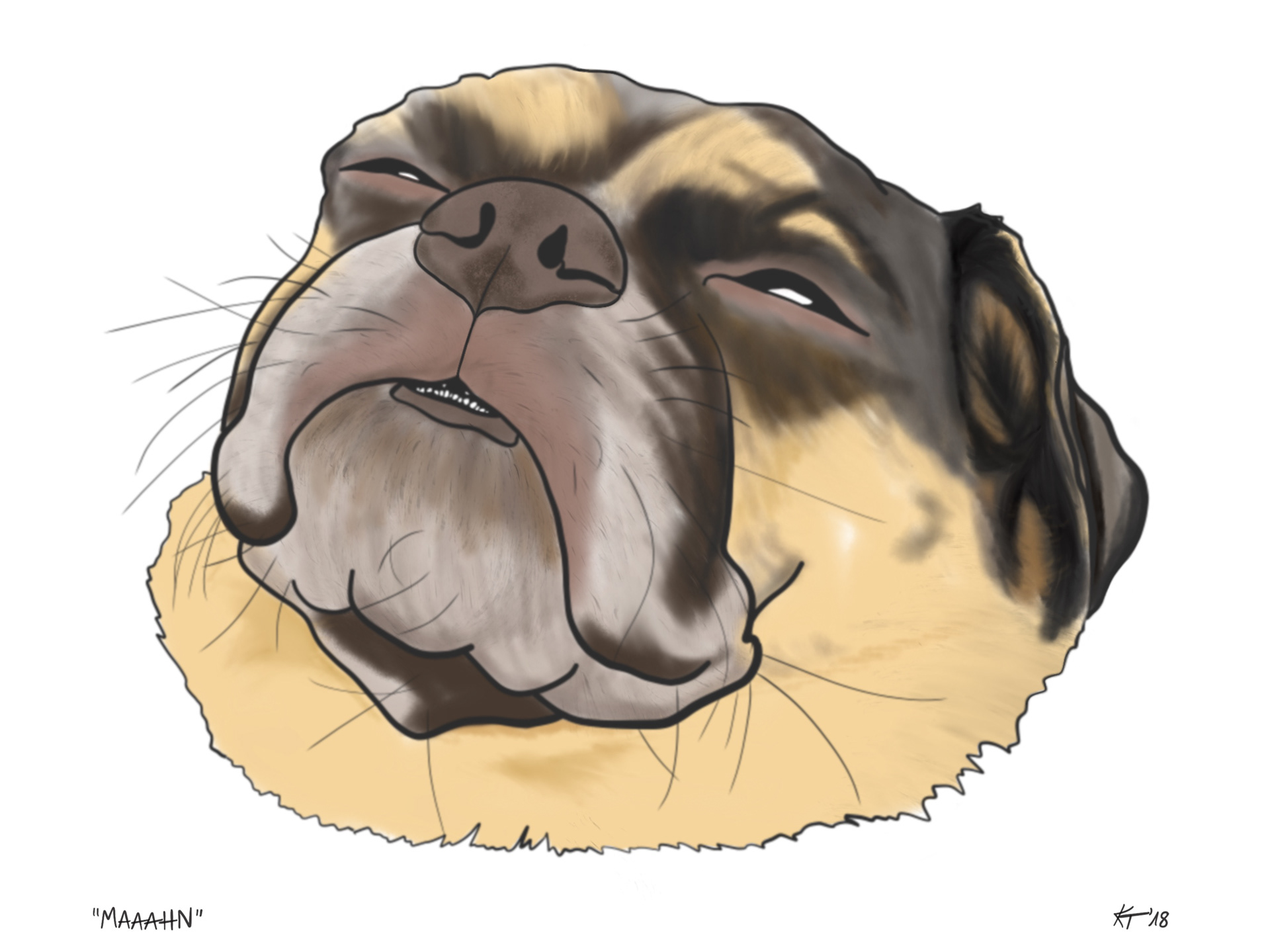 Portrait of my friend's dog after she had eaten 12 edibles. She's fine now, but they caught this hilarious photo of her tripping balls at the vet. I just Needed to capture it. Done in Adobe Illustrator Draw and Procreate on iPad Pro.