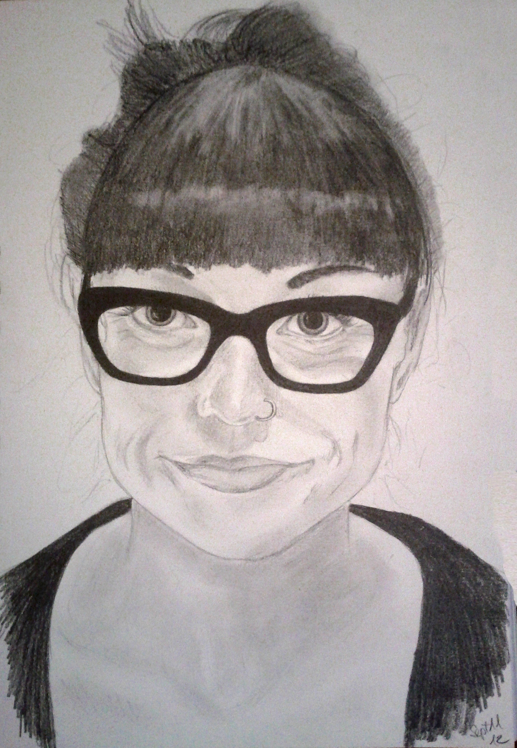 This is a self-portrait done in pencil in 2012. Now looking at it, I know my hair could vastly be improved, but I include it to show that I grow as an artist.